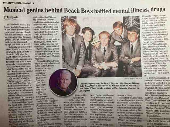 ビーチボーイズのブライアン・ウィルソンが亡くなった